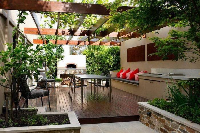 如果你會(huì)經(jīng)常在別墅花園中娛樂、聚會(huì)或會(huì)在戶外度過比較長的時(shí)間,那么投資一個(gè)漂亮的戶外廚房和就餐區(qū)是一件非常有意義的事情。對(duì)于這些類型的區(qū)域,硬質(zhì)景觀需要著重考慮。地面鋪裝材質(zhì)盡量與建筑外觀相得益彰,并順利過渡到院子的其他部分。還有一點(diǎn)非常重要,該區(qū)域的空間必須足夠大,以能容納足夠多的訪客。