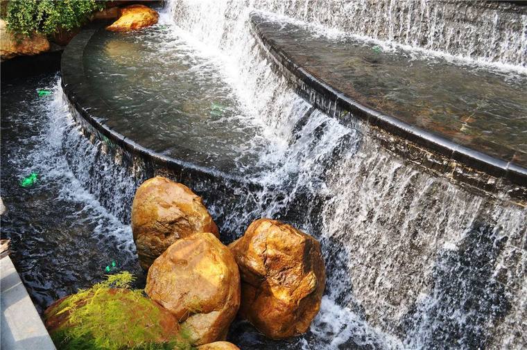 親水是目前的熱門話題,水景使別墅環(huán)境活潑。水面在這里有兩種情況:一種是噴水池、嬉水池,以混凝土做底和壁,用循環(huán)水。另一種是自然水體,就是別墅區(qū)內(nèi)的小河浜。水景應(yīng)考慮綜合利用,生態(tài)平衡,不一定要用大面積的水面。